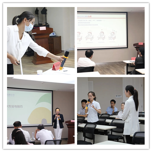 啟動(dòng)儀式結(jié)束后,選手們按序上臺(tái)試講。他們充滿自信、落落大方,通過自我介紹、限時(shí)試講來展示自身的綜合能力。在課程內(nèi)容上,他們結(jié)合自己的工作和思考設(shè)計(jì)相關(guān)的課程。在授課技巧上,借助現(xiàn)場(chǎng)互動(dòng)、角色扮演、視頻演示等多種形式進(jìn)行展示,整個(gè)選拔過程異彩紛呈。