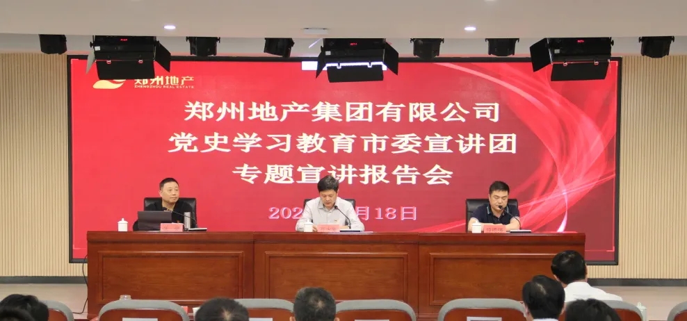 為持續(xù)推進(jìn)黨史學(xué)習(xí)教育走深走實(shí),5月18日上午,鄭州市委宣講團(tuán)走進(jìn)鄭州地產(chǎn)集團(tuán),在集團(tuán)301多功能廳開(kāi)展黨史學(xué)習(xí)教育專(zhuān)題宣講報(bào)告會(huì)。報(bào)告會(huì)由鄭州市委宣講團(tuán)成員、鄭州工程技術(shù)學(xué)院馬克思主義學(xué)院副教授張豪主講,市國(guó)資黨史學(xué)習(xí)教育第二巡回指導(dǎo)組組長(zhǎng)、四級(jí)調(diào)研員段德強(qiáng),指導(dǎo)組成員張?jiān)娪?、陳祥斐到?huì)巡聽(tīng)旁聽(tīng),地產(chǎn)集團(tuán)領(lǐng)導(dǎo)班子、總部全體員工,各子公司支部書(shū)記、黨建部門(mén)負(fù)責(zé)人等共計(jì)150余人參加現(xiàn)場(chǎng)報(bào)告會(huì),各子公司員工共計(jì)170余人通過(guò)線上直播進(jìn)行觀看,會(huì)議由地產(chǎn)集團(tuán)黨委書(shū)記、董事長(zhǎng)萬(wàn)永生主持。