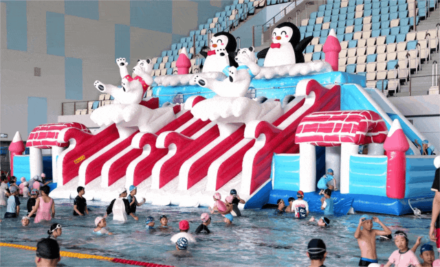 游泳和滑冰是最適合夏日的運動。奧體中心的游泳館內(nèi),夏日限定的趣味水上充氣城堡讓小朋友可以盡情玩耍、享受水花飛濺的專屬樂趣。室內(nèi)冰場可以感受獨特的酷爽體驗,在冰面飛馳中感受透心涼意。