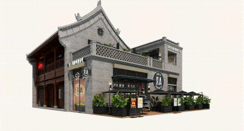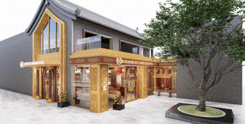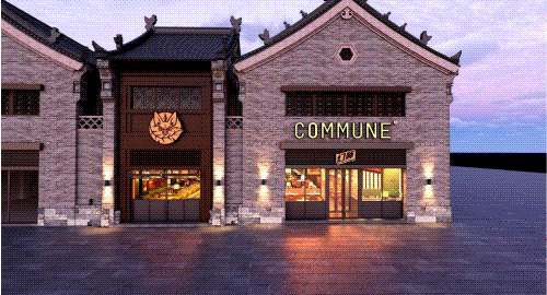 以COMMUNE幻師的門店設(shè)計為例——從效果圖可以看出,建筑外部以青灰色磚墻復(fù)刻商代建筑肌理,檐角神獸造型融入現(xiàn)代燈光設(shè)計,整體風格充滿著古樸與時尚。店內(nèi)則以暖色調(diào)營造松弛感,酒墻擺滿了來自全球的精釀。每當味蕾觸碰到精釀的麥香,窗外同時飄入來自3600年前夯土的氣息——在這里,顧客喝的不是單純的酒,而是歷史與現(xiàn)代的奇妙敘事。