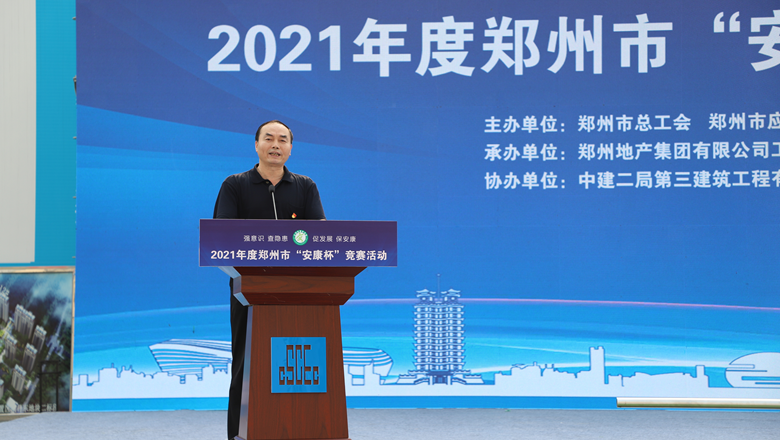為深入貫徹落實(shí)習(xí)近平總書(shū)記有關(guān)加強(qiáng)安全生產(chǎn)工作的部署和要求,進(jìn)一步強(qiáng)化各級(jí)各部門(mén)、各企業(yè)主體的安全責(zé)任意識(shí),確保我市安全生產(chǎn)形勢(shì)持續(xù)好轉(zhuǎn),職工安全健康不斷鞏固。6月11日上午,由鄭州市總工會(huì)、鄭州市應(yīng)急管理局、鄭州市衛(wèi)生健康委員會(huì)及鄭州市消防救援支隊(duì)主辦,鄭州地產(chǎn)集團(tuán)工會(huì)、鄭州西流湖控股有限公司工會(huì)承辦的鄭州市2021年“安康杯”競(jìng)賽啟動(dòng)儀式在中原新區(qū)廟王東安置區(qū)項(xiàng)目成功舉行。鄭州市相關(guān)組織部門(mén)、市總工會(huì)成員單位、地產(chǎn)集團(tuán)、西流湖公司、各參建單位共200余人參加啟動(dòng)儀式。鄭州市一級(jí)巡視員,市總工會(huì)黨組書(shū)記、主席趙新中、鄭州市衛(wèi)生健康委員會(huì)黨組成員、二級(jí)調(diào)研員楊德林、鄭州市應(yīng)急管理局三級(jí)調(diào)研員安春茂、鄭州市消防救援支隊(duì)副支隊(duì)長(zhǎng)、滅火救援指揮部部長(zhǎng)李隆、鄭州市總工會(huì)副主席宋少丹、鄭州地產(chǎn)集團(tuán)有限公司監(jiān)事會(huì)主席、工會(huì)主席李靜波、鄭州地產(chǎn)集團(tuán)西流湖公司黨支部書(shū)記、董事長(zhǎng)、總經(jīng)理 吉獻(xiàn)亮,中建二局第三建筑工程有限公司西北分公司黨委副書(shū)記、執(zhí)行總經(jīng)理趙海軍出席儀式。啟動(dòng)儀式由市總工會(huì)勞動(dòng)和經(jīng)濟(jì)部部長(zhǎng)宋慧主持。